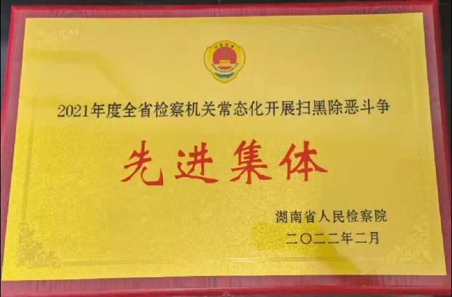 日前,从湖南省刑事检察工作会议上传来喜讯,邵阳县365现金app_足彩365_正规beat365app荣获“2021年度全省检察机关常态化开展扫黑除恶斗争先进集体”。
